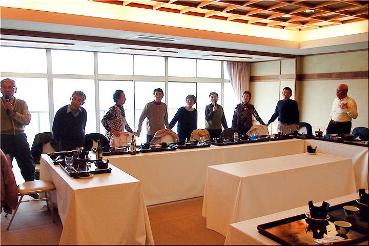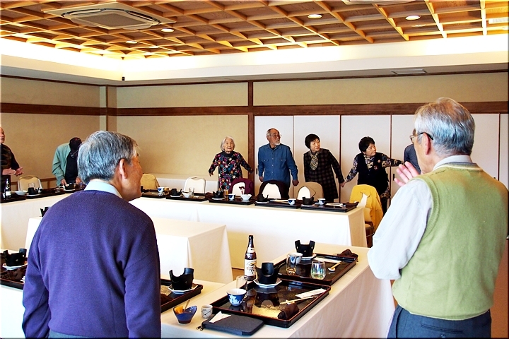 11:25からスタートしました忘年会も、2時間半も経ますと、飲み物、食べ物、カラオケもほぼ出尽くしましたようですネ。丁度イィ頃合いで、お開きの時間が到来です(^.-)☆