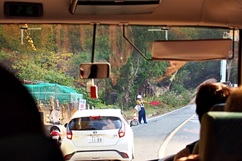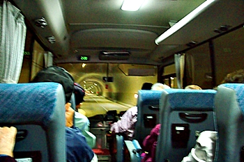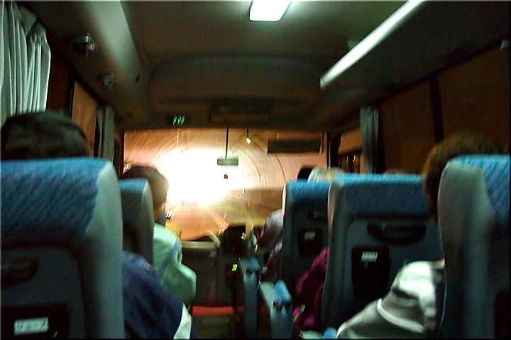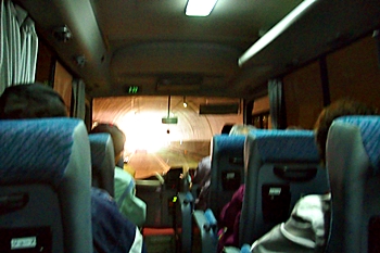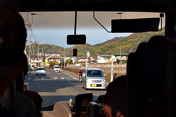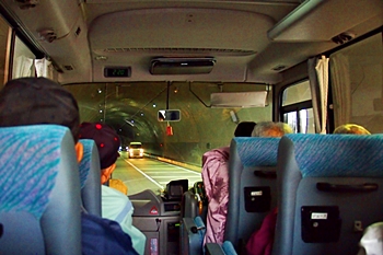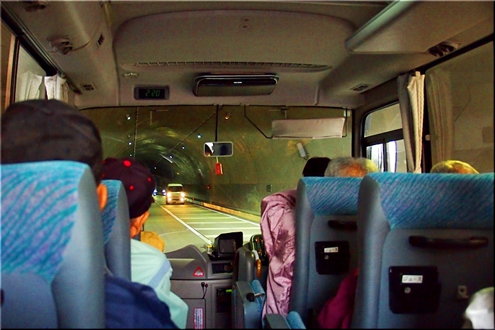 GONsan達を乗せましたマイクロバスは、ヤッて来ました道を戻り、今年の3月末に開通しました鞆未来トンネル≠抜け、我が町水呑≠ヨと戻ります。