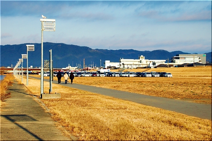 A.M.08:40過ぎに我が家を出まして、水呑大橋東詰下の河川敷駐車場に車を駐め、そこからはノンビリと歩いて会場の草戸大橋方向へ(^-^)