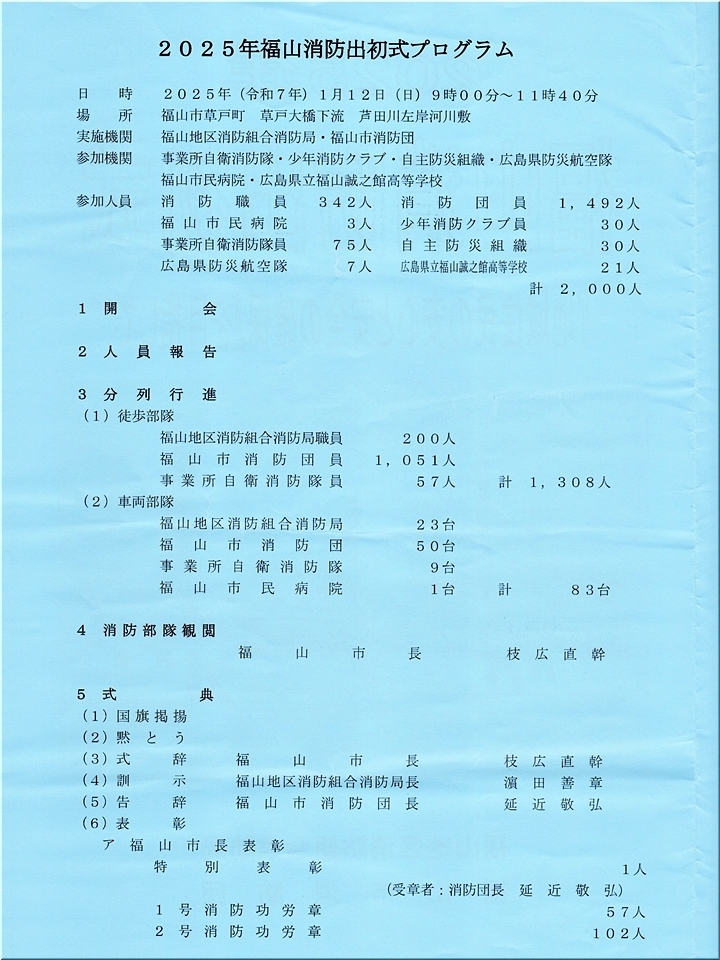 1/12(日)は、2025年・福山消防出初式≠フ開催で、今年もまた見学行きとなりましたGONsanです。