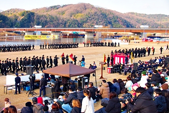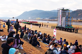 定刻に開会の宣言後、枝広福山市長が登壇で、まずは人員報告。そして、分列行進がスタートです(^.-)☆