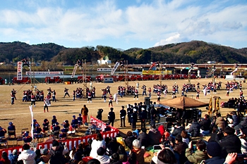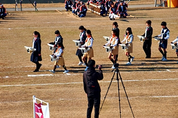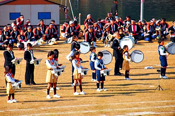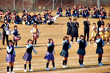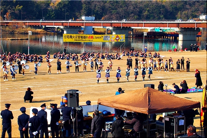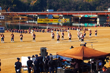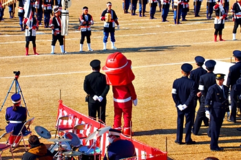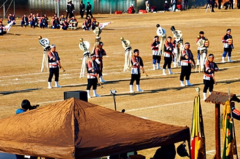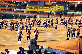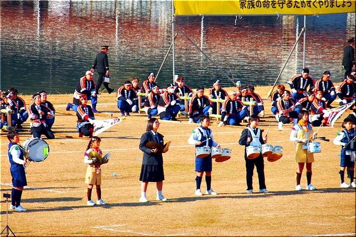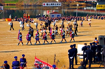 式典が終わりますと、演技披露・公開訓練と続きます。まずは、光学区少年少女消防クラブ≠フマーチングです。