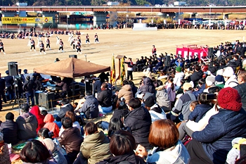 周囲を見廻しますと、随分、観客も増えて来ました。小さなお子様連れの方々は、式典を終え演技披露が始まります頃を見計らって、ヤッて来られます方も多いようですネ(^-^)//"