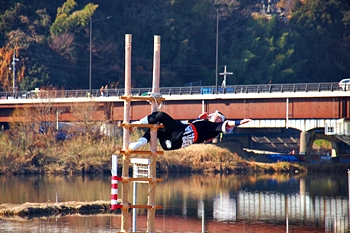 最後に、防災標語を記された垂れ幕を掲げオシマイとなりましたけど、あいにくの風で凡てに眼を通すのは出来ませんでしたネ。左から順に、ガンバレ消防団∞郷土愛護の精神∞早めの避難呼びかけを∞火の用心≠ワでは読めましたけど、後は分かりませんでした。残念(^-^)//"