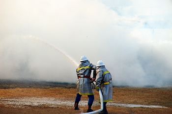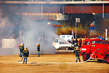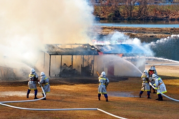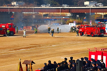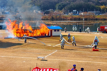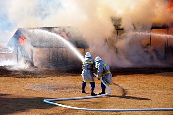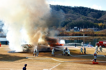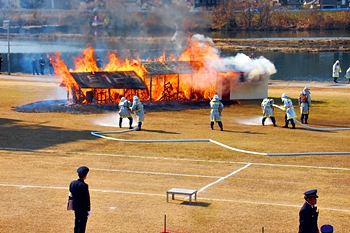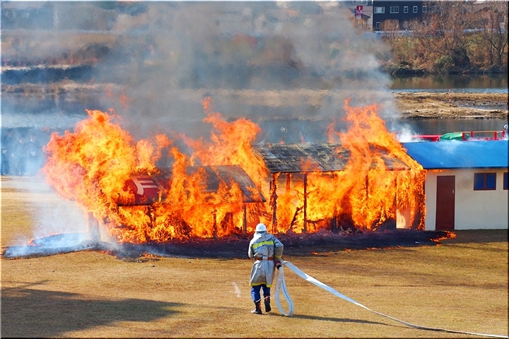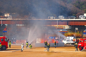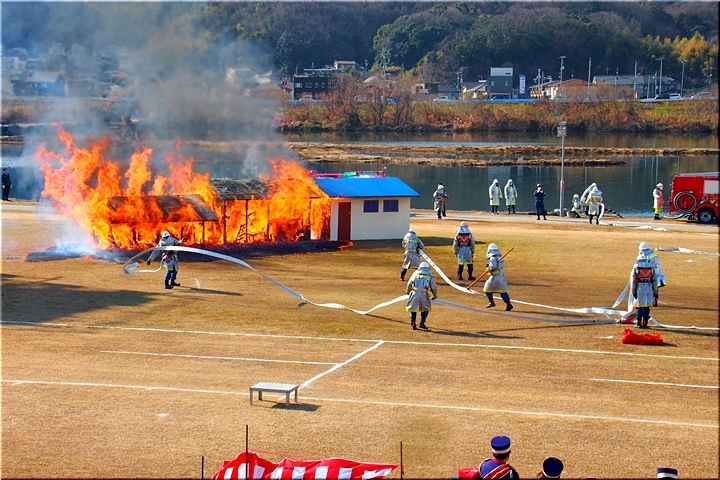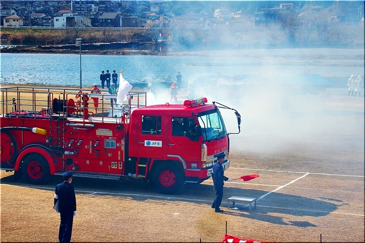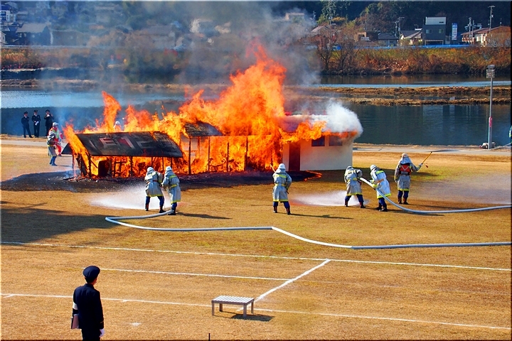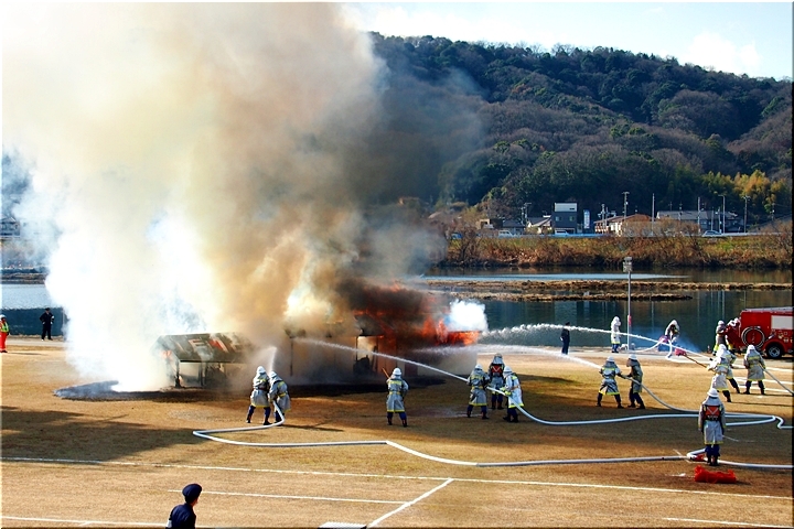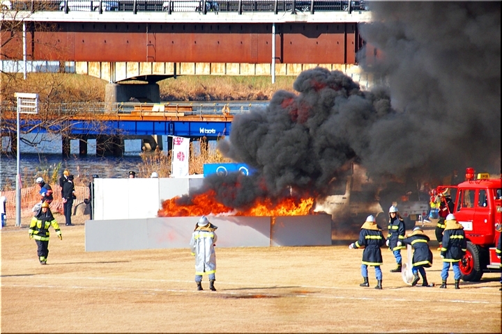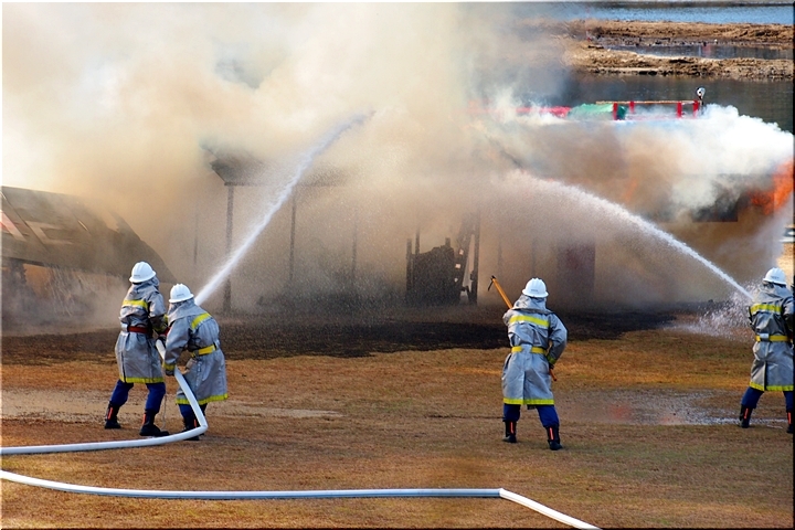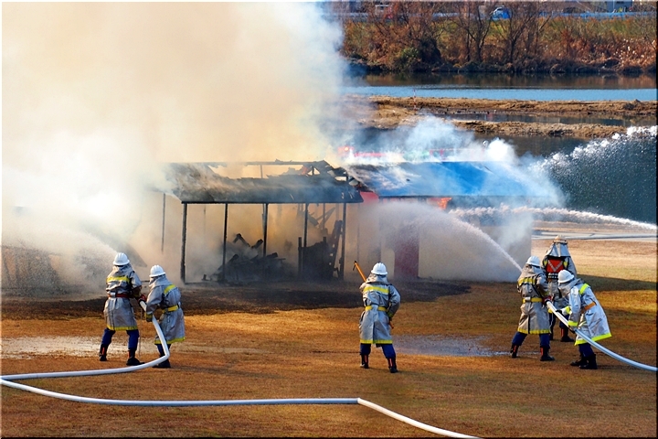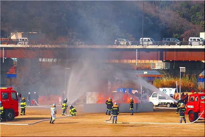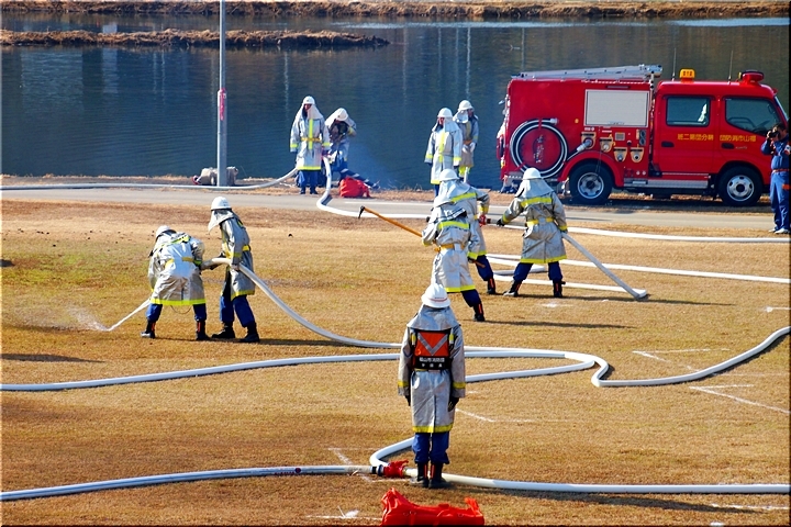 日頃の訓練・実践で鍛え上げておられますから、指揮官の指示の元、統制が取れました機敏な消火活動は、拝見していまして大変気持ち良いものでありました(^-^)//"