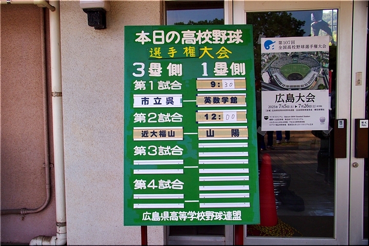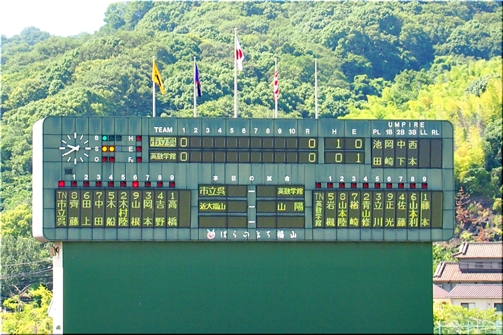 福山市民球場で試合がありますと、大概、一日は観戦に出掛けますGONsanで、今大会は、7/13(日)に福山市民球場で開催の「市立呉×英数学館」「近大福山×山陽」の観戦となりましたGONsanです(^.-)☆