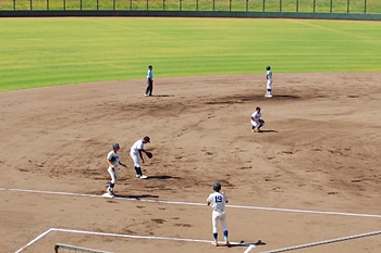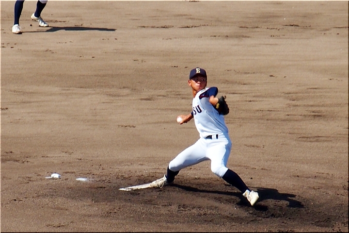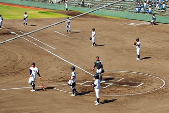 1:1番 岩槻 翔大 無死走者なし 1-1からセカンドフライ 1アウト、2:2番 山本 陸人 一死走者なし 2-2から空振り三振 2アウト、3:3番 楢崎 成二郎 二死走者なし 0-1からライトフライ 3アウト