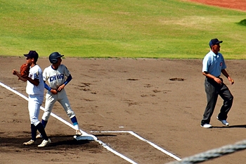 1回の攻防は、両チームとも無得点でありました(^-^)//"