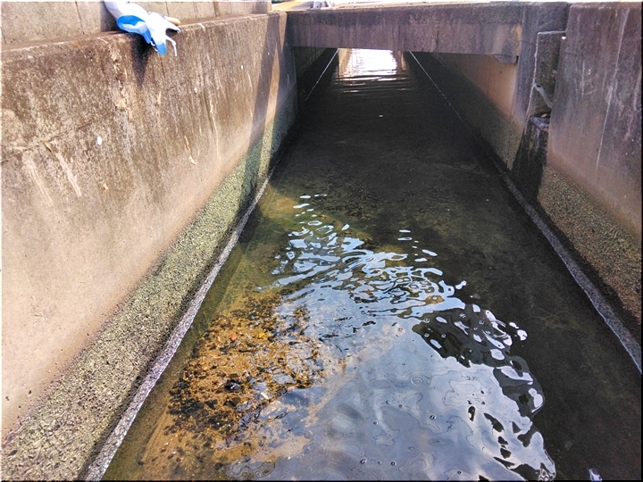 そぅ言えば、今朝、GGに出掛けに我が家横を流れます用水路を覗きますと、水深は浅かったですネ。
