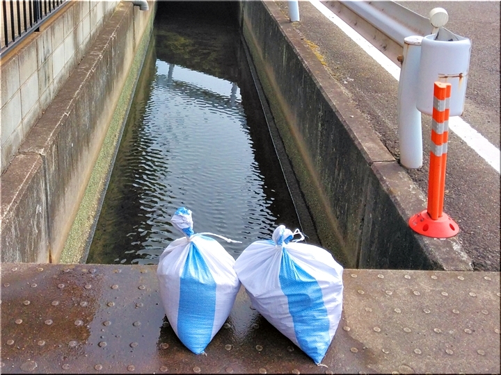 どなたかが投げ込んだのか、上流からユックリと流れに乗って転がって来ましたのか、どちらか分かりません。この調子では、土嚢袋2袋では納まらないかも…と思いましたら、終わってみますと2袋で間に合いましたネ。