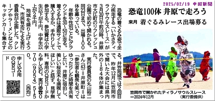 本日の中国新聞朝刊に、第2回いかさティラノサウルスレース♀J催の記事掲載が…