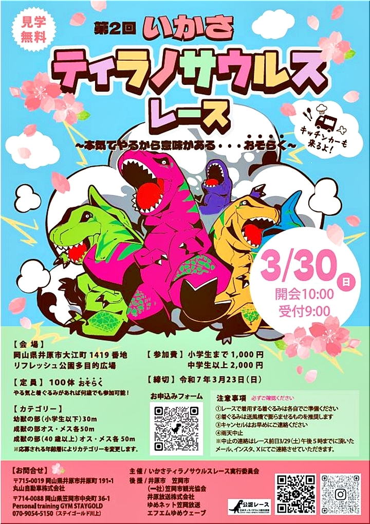◆岡山県井原市で2025年3月30日(日)に公認レース開催決定【日本ティラノサウルス競技連盟】