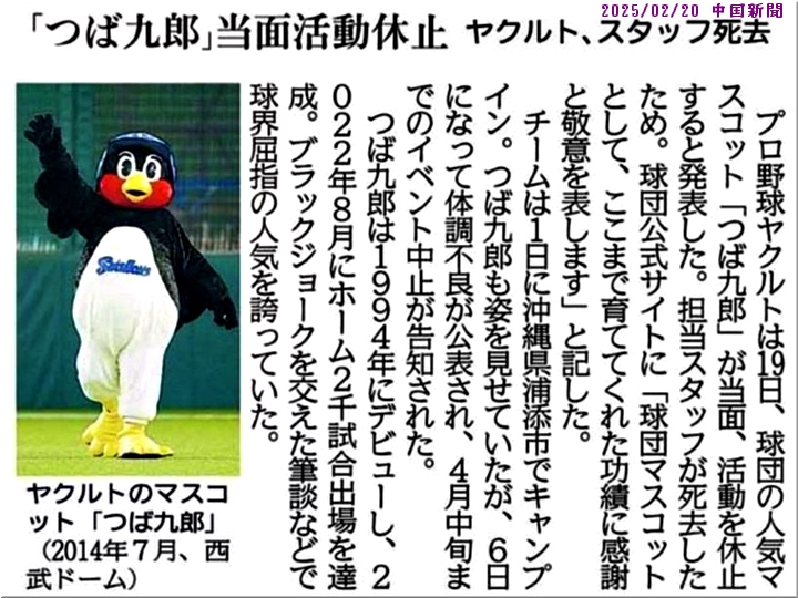 本日の中国新聞朝刊記事で知りましたけど、ヤクルトの球団マスコット「つば九郎」担当スタッフの方がご逝去。