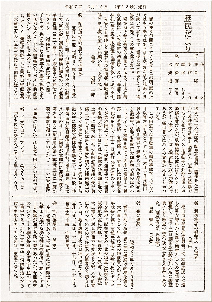 せっかく、文教地区、住み易いキレイな町・水呑町≠フ良きイメージがありますのですから、今からも、このイメージを壊さないように町民全員で心掛けたいものであります(^-^)