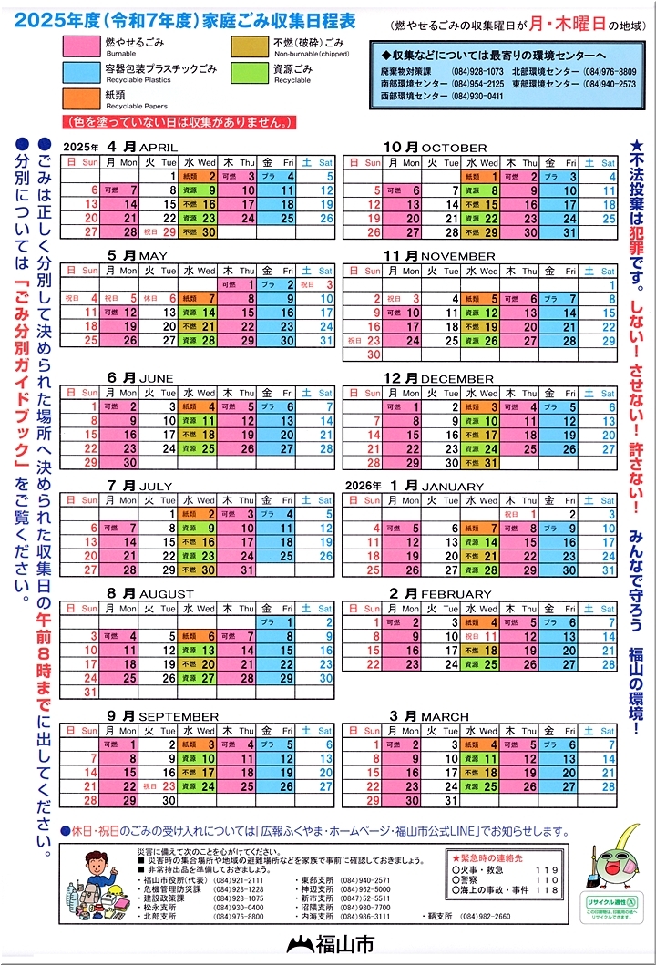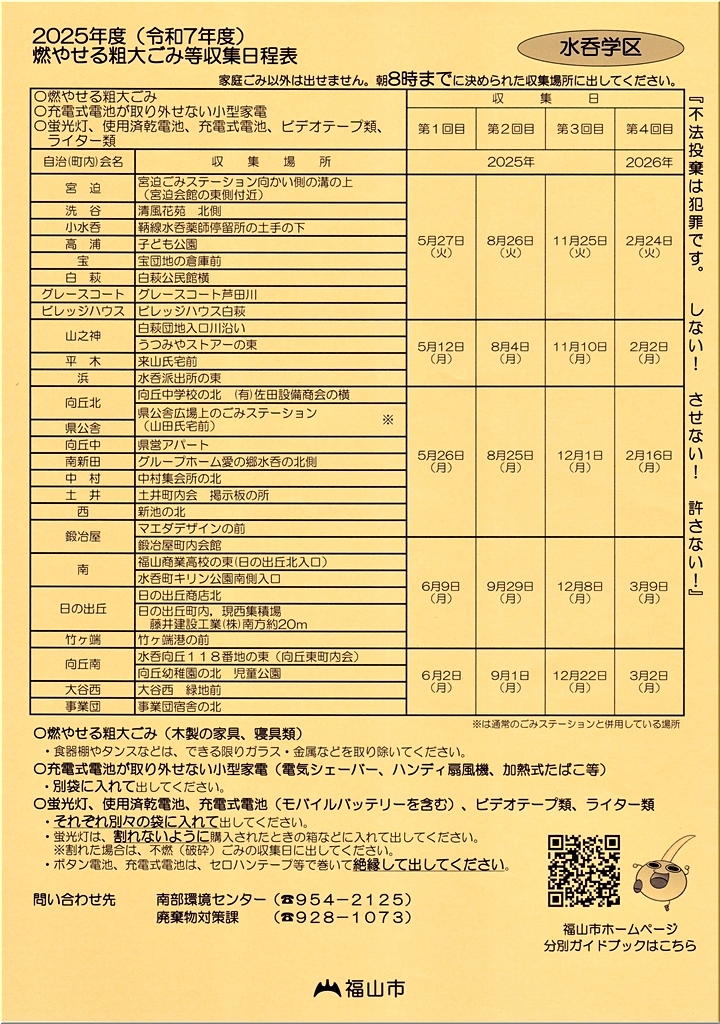 回覧の中には、各戸保存用として2025年度(令和7年度)家庭ごみ収集日程表%凾フ配布物も。