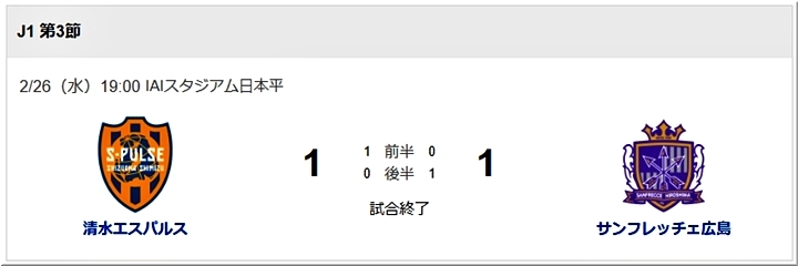 ◆J1 第3節 2/26(水)19:00 清水エスパルス×サンフレッチェ広島