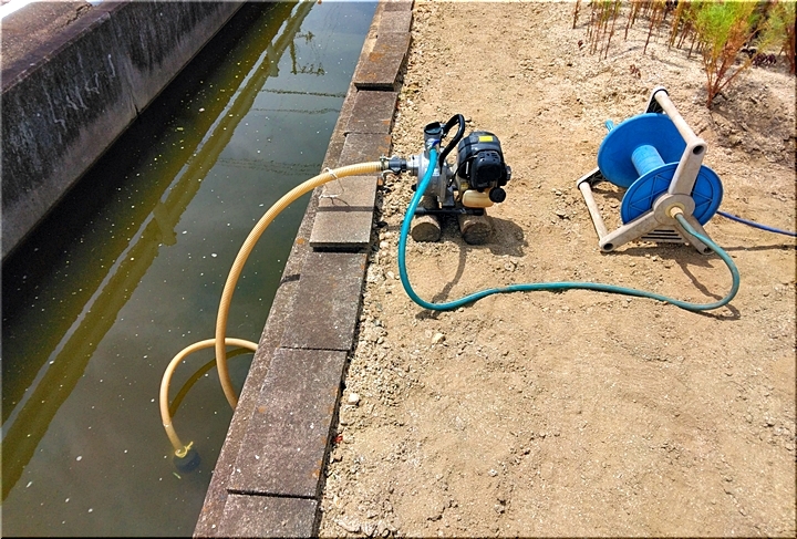 …と、こんな危惧もありまして、GGから戻って来ますと、昨日・一昨日と、我が家の横を流れます用水路からポンプで畑の水やり作業となりました。