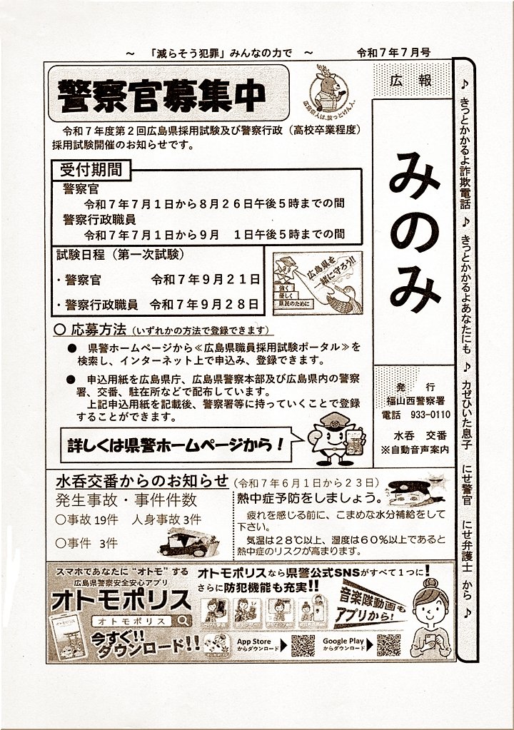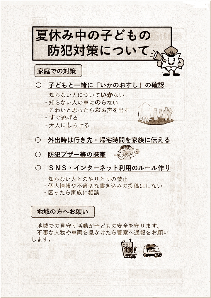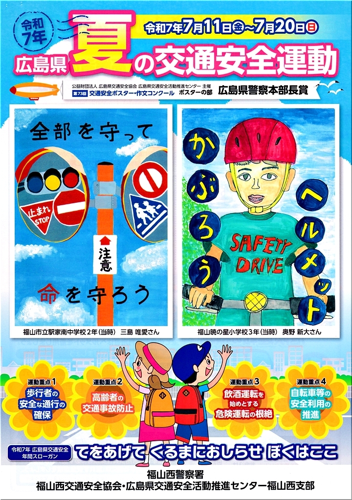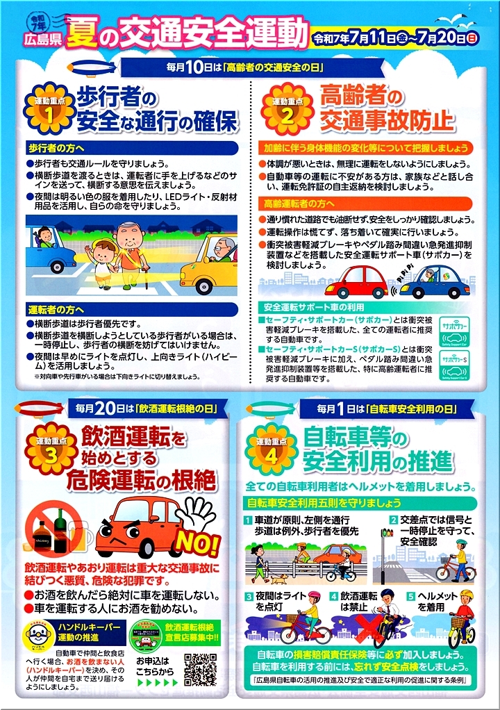 それから、既にスタートしていますけど、7/11(金)〜7/20(日)は「夏の交通安全」期間です。