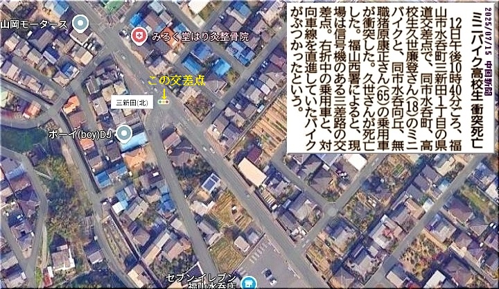 GONsanも、突発的なシーンへの反応・対応に多々鈍さが生じて来ておりますので、車の運転には充分留意しなければならないのですけど、我が家近隣では、つぃ先日(7/12)、死亡事故が発生しておりましたネ…