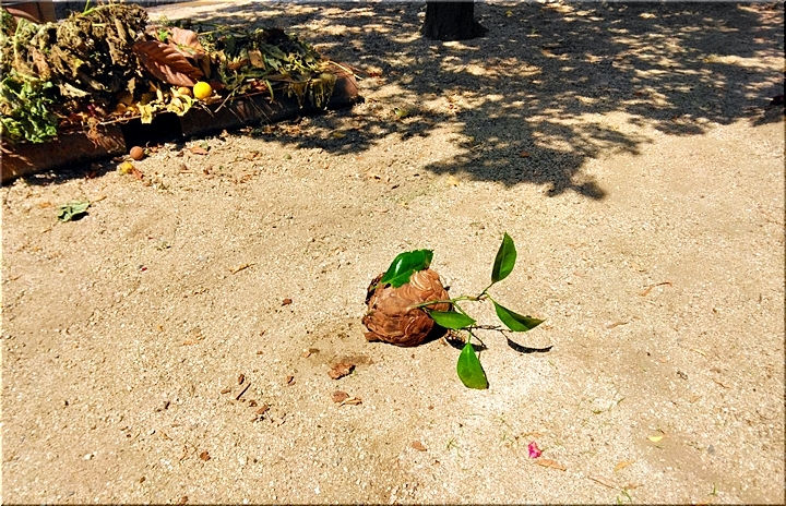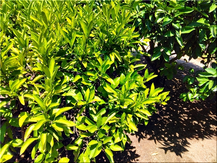 ですが、ミカンの木の葉っぱには、結構セミの抜け殻が付いているのですけどネ。八朔の木の葉にも同様に。ただ、八朔の木をジックリと眺めておりましたら、何枚かの葉が黄ばんでおりました。