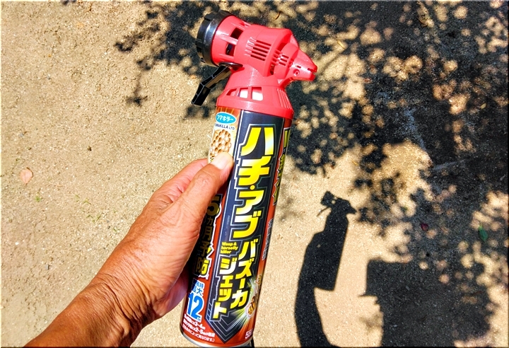 5〜6匹スズメバチが出て来まして、その内の2匹がGONsanを襲撃ですからタマりません。が、この2匹目掛けてジェット噴射しますと、2匹とも逃げて行きましたネ(^_^)v