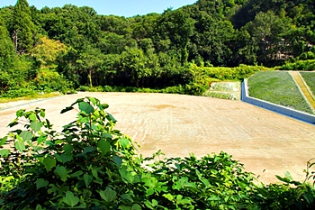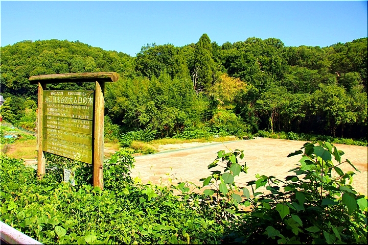金江の大ムロの木≠フ案内板の後方は、キレイに平坦地に造成工事が施されていますけど、造成前は、どんな状態でしたのでしょうネ…