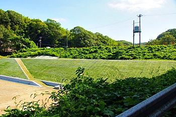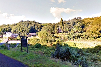 Googleマップで確認してみますと、ふ〜ん、2013年10月時点の画像では、樹木・雑草等が生い茂った状態でありました。