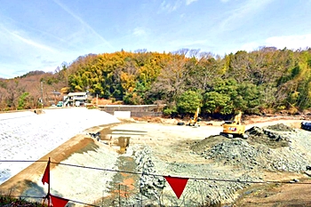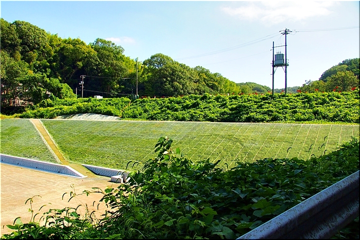 整備されました土手に向かってみますと、以前は池でしたのを決壊等の防災上、改良工事を行われたようであります。これもGoogleマップで確認してみますと、2025年3月時点では造成工事中の画像ですから、現在は、ほぼ工事完了なのかも分かりませんねぇ〜