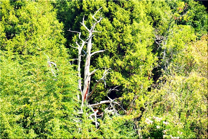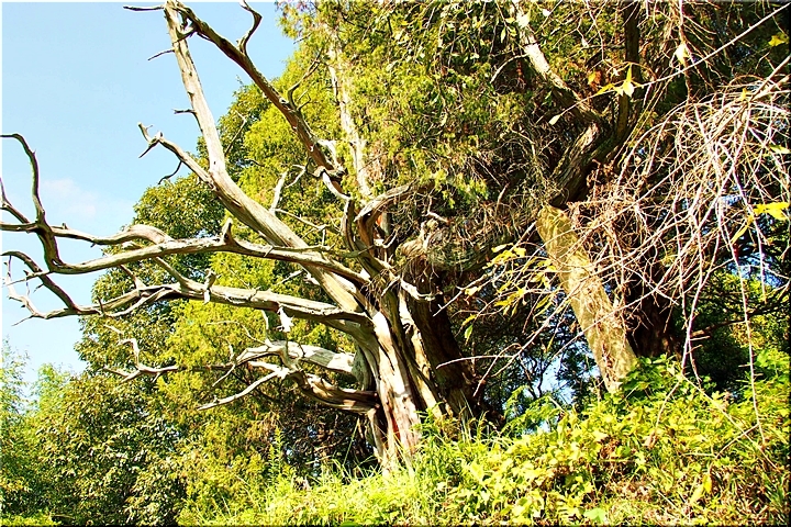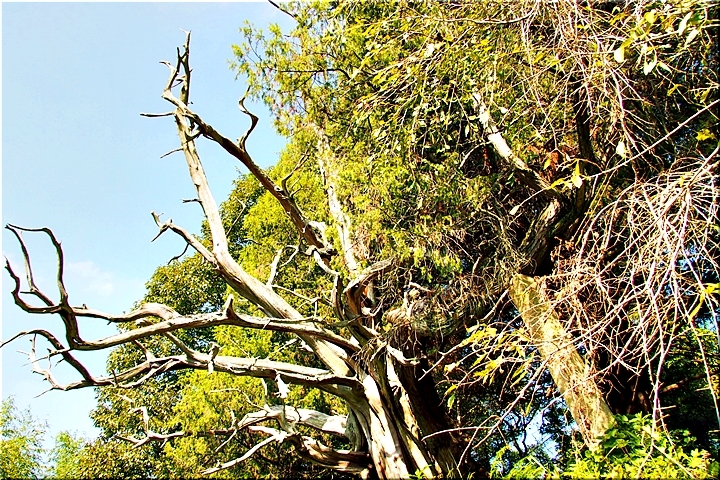 左前方に見える大ムロの木は枯れてはいるが、根本より出た側枝に旺盛さを見せている。