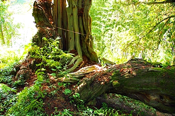 と、言いますのも、今年の5/31(土)に表参道で七面山≠ノ上り奥の院で宿泊。翌、6/1(日)には、裏参道(北参道)で下山しましたけど、その下山時に安住坊≠フ「七面山の大トチノキ」を熱心に画像に納めておられます若者に遭遇です。