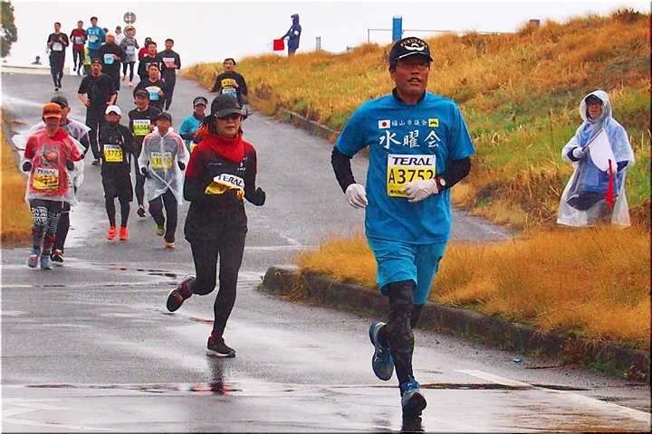 こぅして、雨の中、ズッと画像に撮り続けていまして、見落としていますのかも分かりませんけど、仲々、存知あげますお顔に出逢いません。やっぱり、ハーフマラソンの部でありませんと、知人・友人は出ていませんのかも…こんな想いも生じながら、ひたすら撮り続けておりまして、いゃいゃ危うく気付きませんところでしたけど、ヤッと存知あげます方が(^_^)v