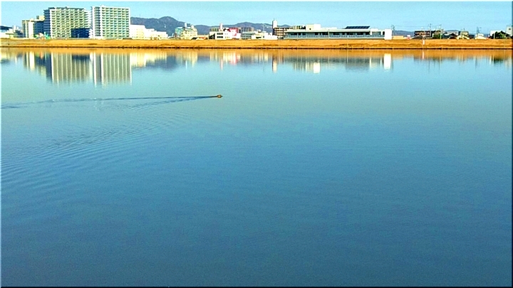 風もありません、まさに小春日和≠フ本日の天気。芦田川の川面は波もありませんから、鏡なみの景観を醸します。