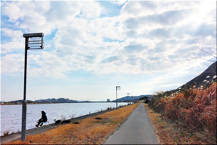 芦田川の右岸・左岸に限りませんで、一年を通じましてこぅした釣り人をよく見掛けます。が、何が釣れますのでしょうねぇ〜釣れました瞬間を眼にした事はありませんから(^-^)