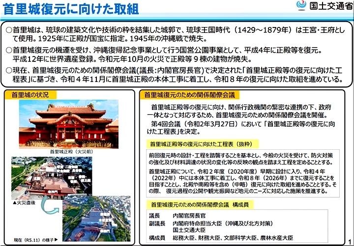 国交省の「首里城復元の取組について」の資料がWEB上にありましたけど、総工費の記載はありませんでしたネ(^-^)//"