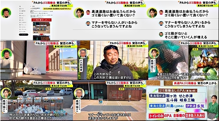 一方、利用者側からは「休憩ついでにゴミを捨てられなくなって不便だ」といった戸惑いの声が上がっています。 また、SNS上には「高速代も払って利用しているのにゴミ箱までなくなるのか」という不満の声も多く投稿されています。