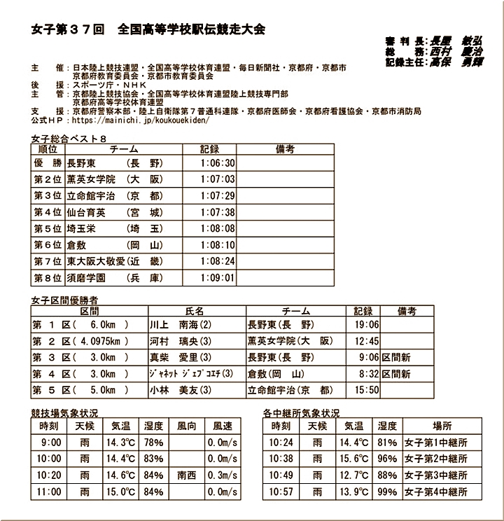 全国高校女子駅伝…一度もトップを譲らず連覇の長野東°ュかったですネ\(^o^)/