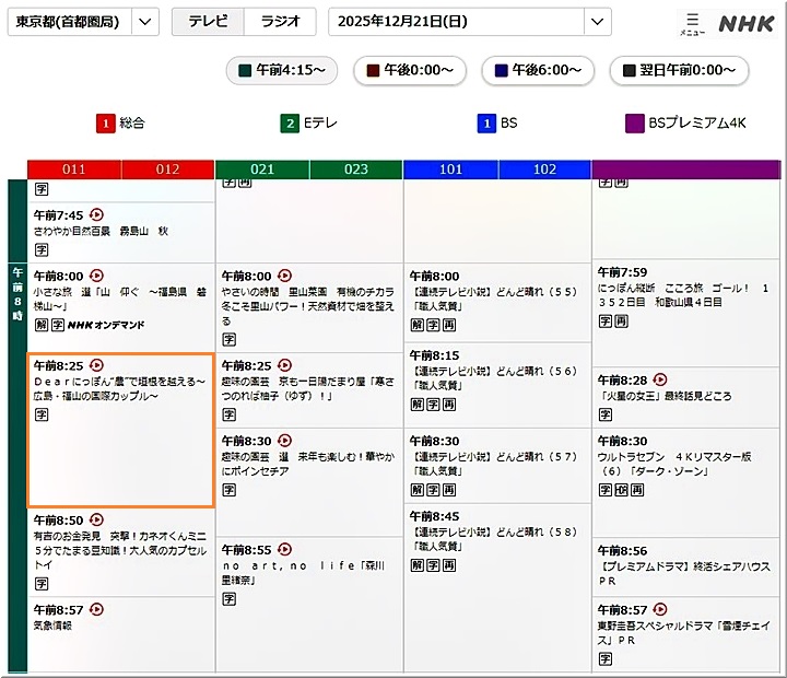 -- Dearにっぽん 12月21日日)午前8:25〜 2025年12月15日 --