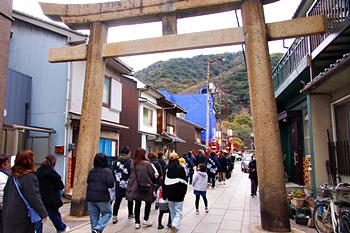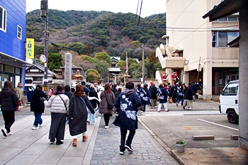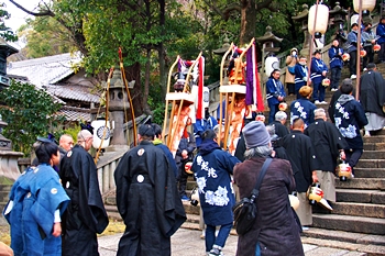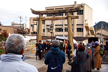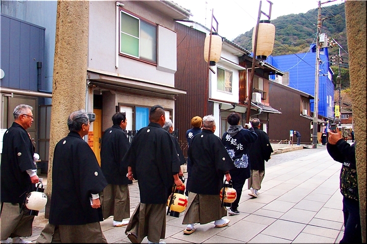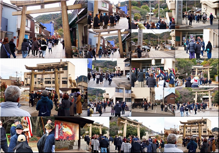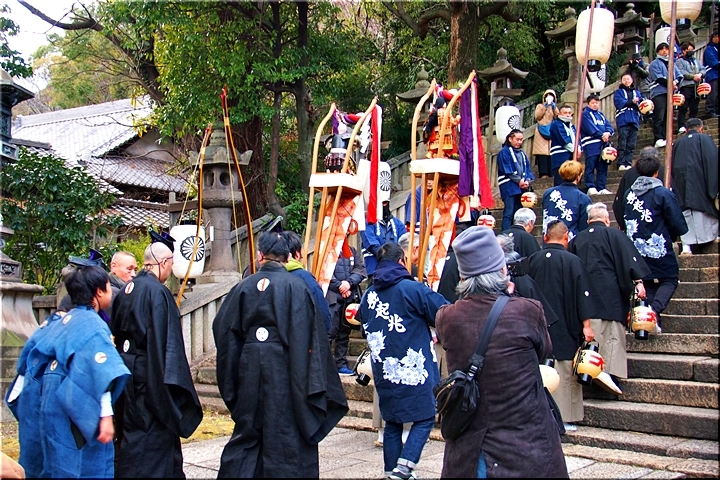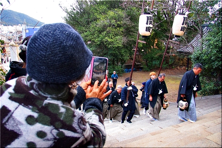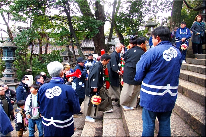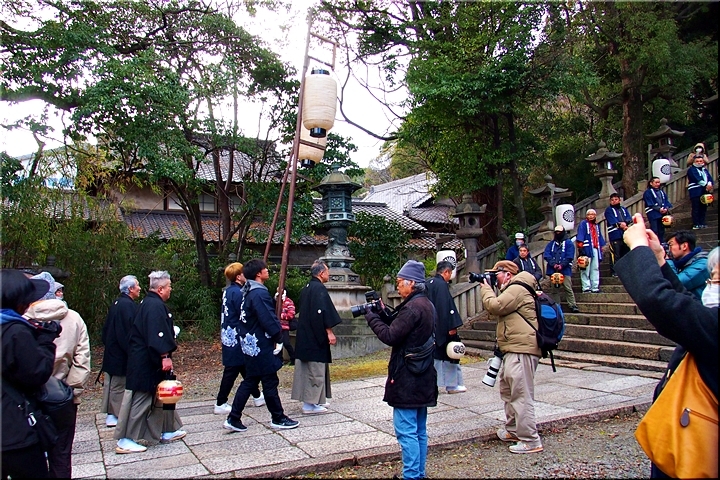 神事は、鞆町の旧7町が輪番で担当されますようですけど、そぅでしたネ、今年は関町地区の皆様が当番年でありました。参道で、この方々と遭遇しますとは、実にタイムリーでラッキー\(^o^)/