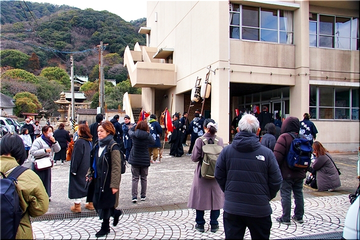 この方々は、まず鞆コミュニティセンター≠ノ向かわれ、暫し待機となりました。神事スタートのP.M.2:00までには、未だタップリと時間が(^-^)