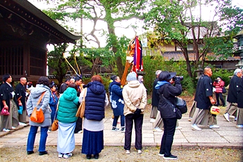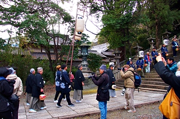 P.M.2:00も近付いて来ましたようで、関町≠フ皆様がユックリと鳥居(二の鳥居)下を、神社の守護神を配置した随身門に向かって出発です。