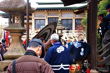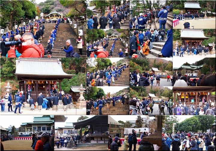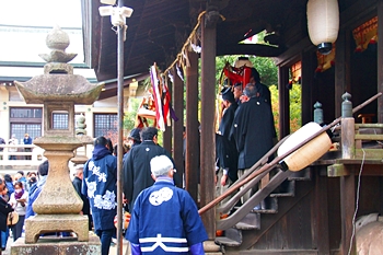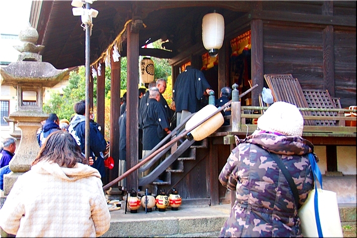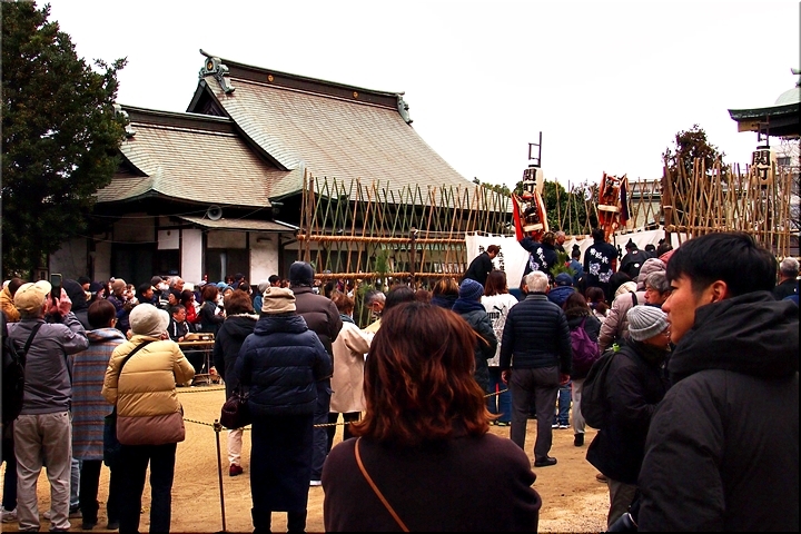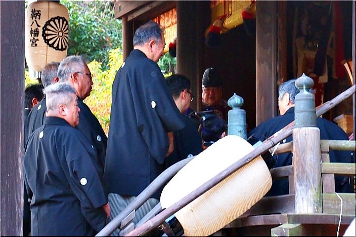 前日、当日と二度にわたって、当番町の一同が、拝殿のきざはしを埋め、敬虔な、厳粛な、祭儀を行い―、さあ、八幡神も御照覧!