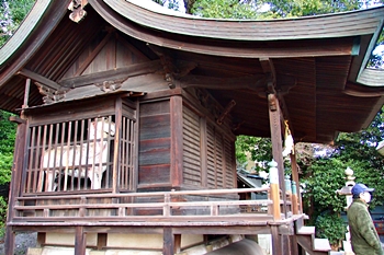 大雁木(大石段)を上りきりますと、拝殿・本殿¢Oの境内に到着ですけど、この前を八幡社≠ヨと向かいます。