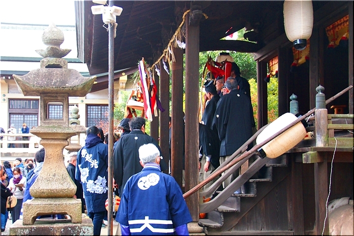 烏帽子凛々しい、奉納の装い、節分も終わり、こよみの上では春。