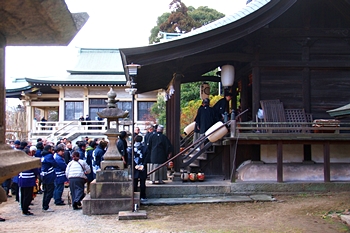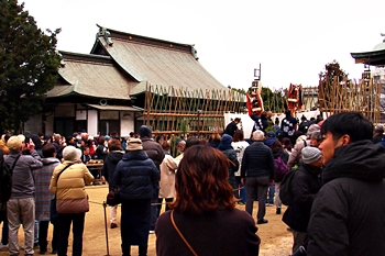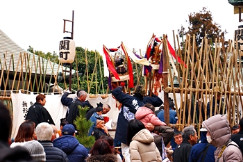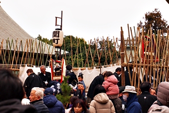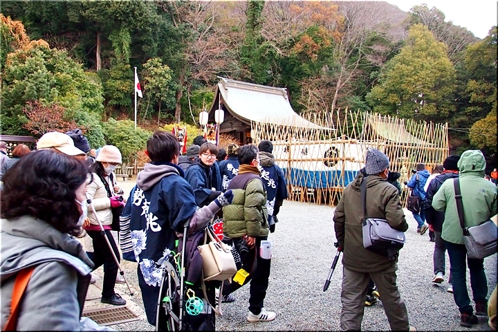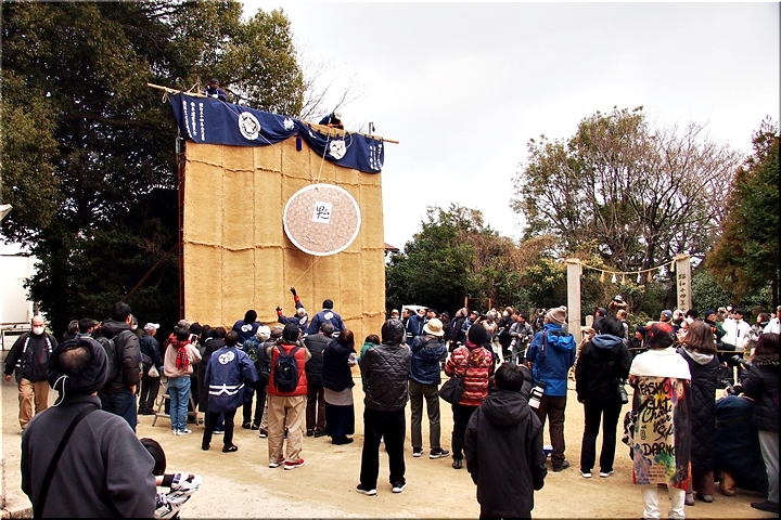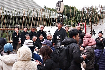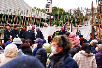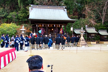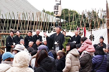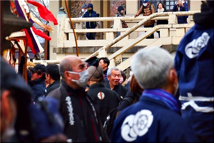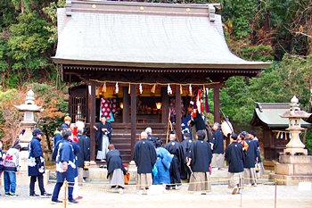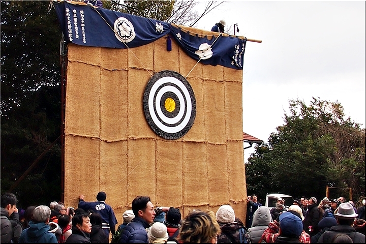 刺すように冷たい冬の空気の中で、片肌脱いだ弓主の姿が勇ましい祭礼です。