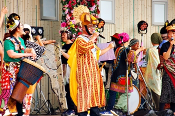 中央公園南口にと戻って来ますと、ソランポ・ソラン≠フお二人のパフォーマンスに人の輪が(^_^)v