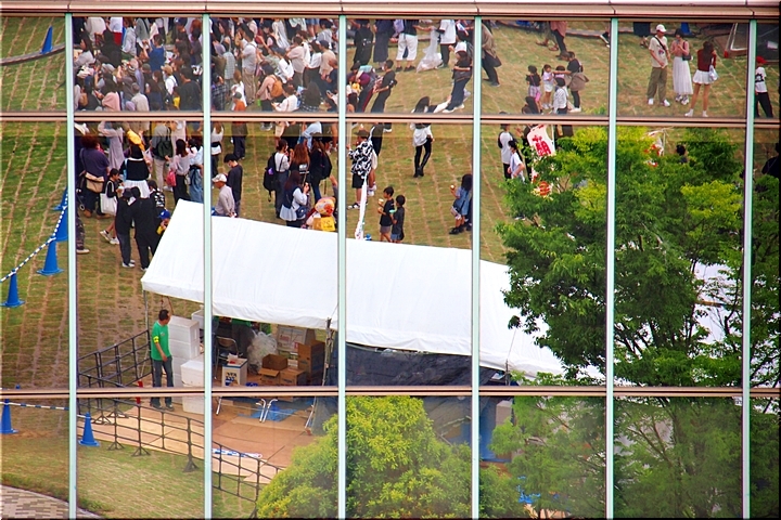 中央公園ステージでは何が行われていますのでしょうネ…大道芸スケジュール≠確認しましても、17:30〜一発芸大会ですけど、未だ時間前ですからよく分かりません(^-^)