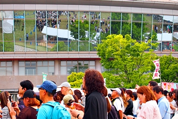 …と、こんなイベントがありますようです。イスに座っておられる方・カメラの三脚が向いています方向にステージがありますのかも…そぅ言えば、ローズアリーナに入ります際、外で列を作って大勢の方達が並んでおられましたけど、ふん、ふん、このイベントの整理券を求めます列でしたようですネ(^_^)v
