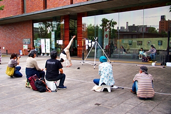 図書館前に向かってみますと、ここでは目黒宏次郎《anのパフォーマンスです。