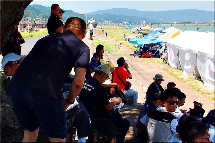 レース中には護岸で画像に納めますGONsanですけど、レースの合間にはこの樹木の下へ。決して大木でもないのですけど、日差しを避けますには最適な場所であります(^.-)☆