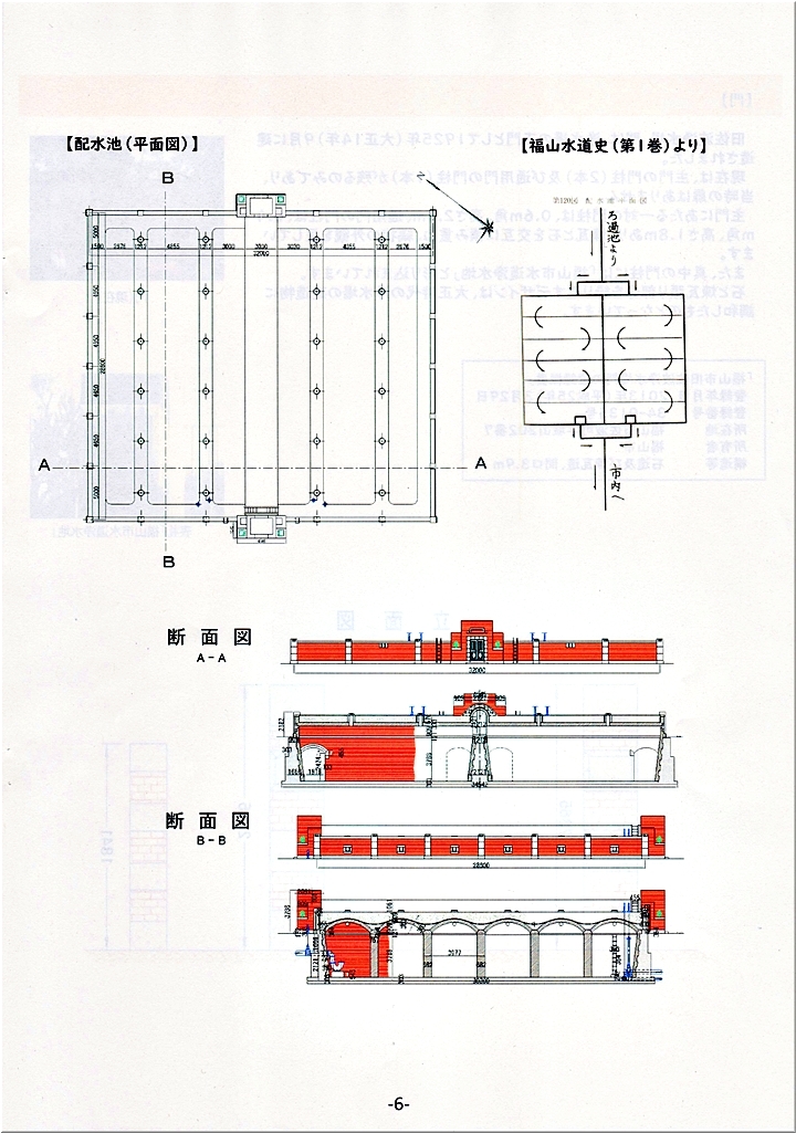 ?現在、旧佐波浄水場は福山市における近代水道発祥の地として、煉瓦造りの配水池や浄水井上屋(じょうすいせいうわや)、門は、現在でも建設当時の形のままで残っており、近代水道の歴史をとどめる貴重な建造物であることから、国の登録有形文化財(建造物)に登録されています。